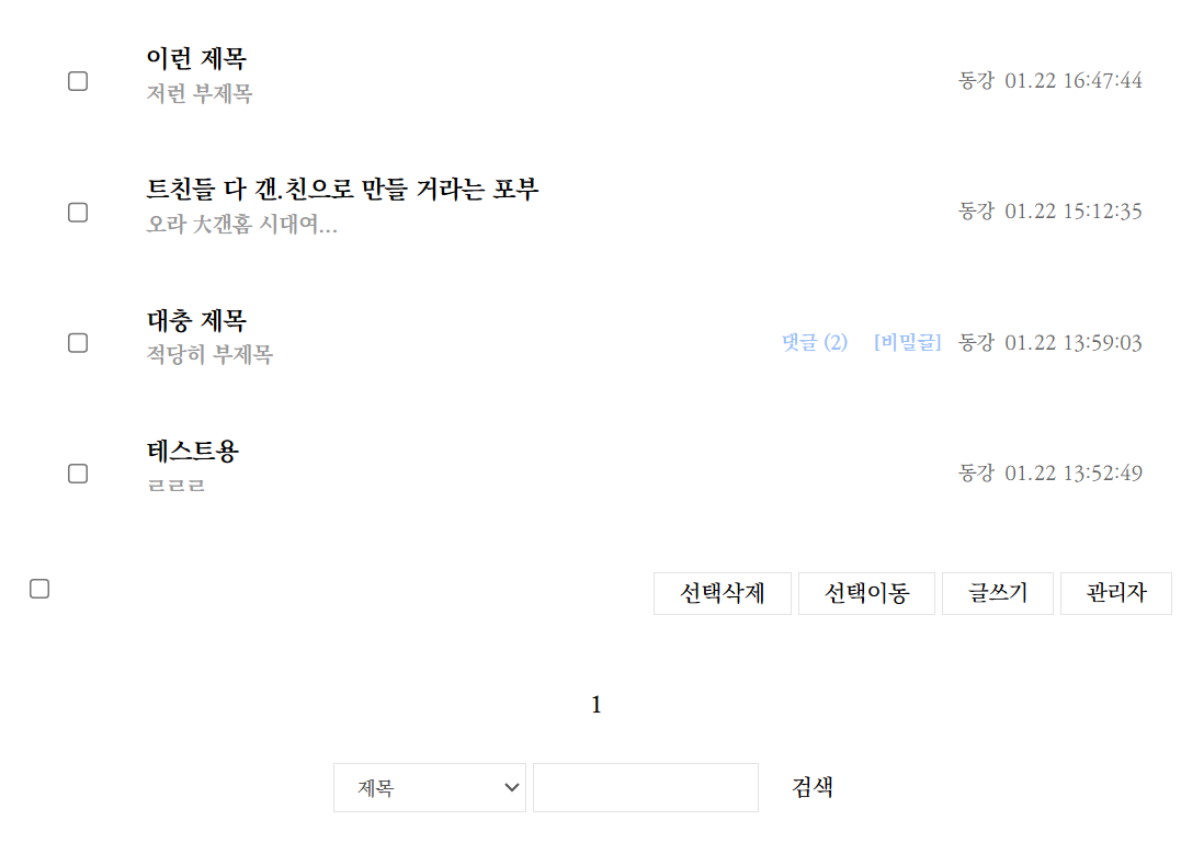 대하님의 bbs 스킨에 부제목 등의 기능을 추가하고 다듬었습니다. 아보카도 에디션 퍼스널에서만 테스트를 거쳤습니다.
