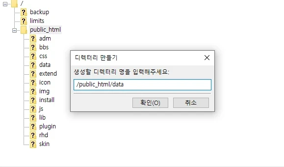 - public_html 폴더 우클릭, '디렉터리 만들기' 클릭